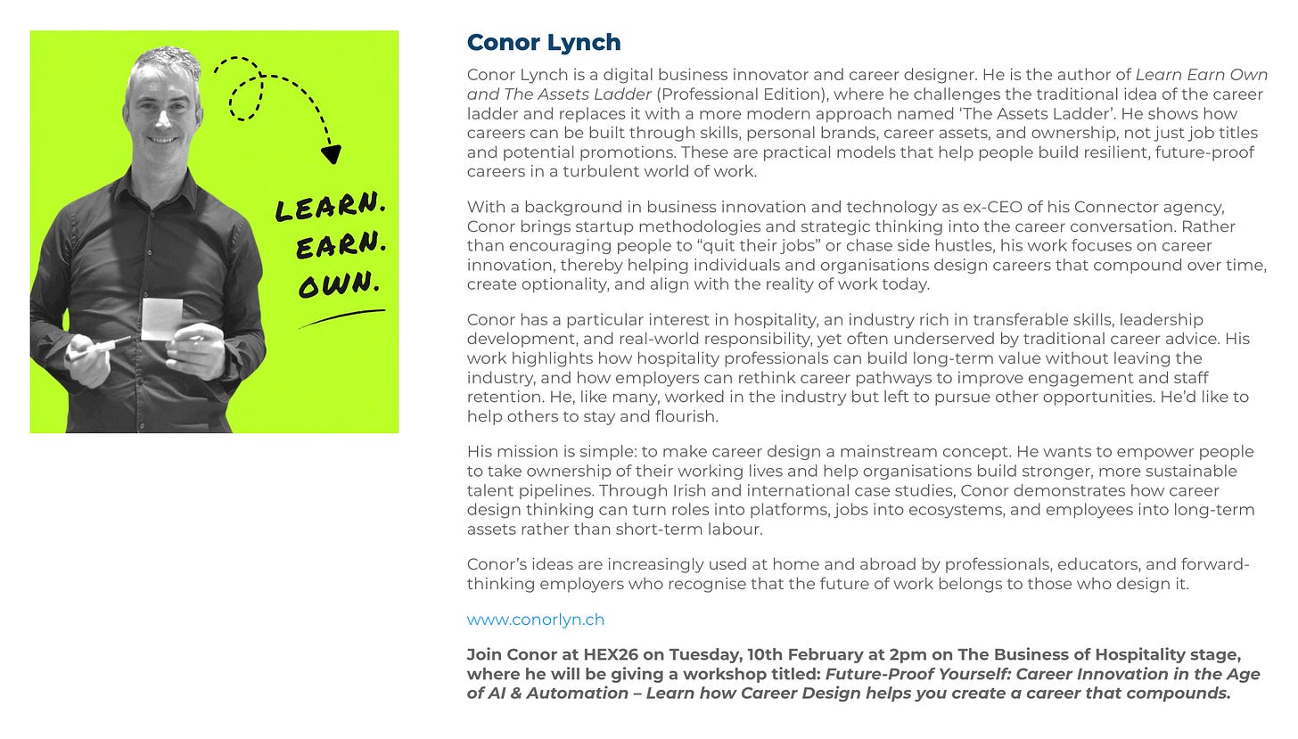 I will speak at Hospitality Expo in Dublin on 10-11 February 2026. Plus I will also be talking to other guests about their careers and hopefully create some insightful content to share with you here.