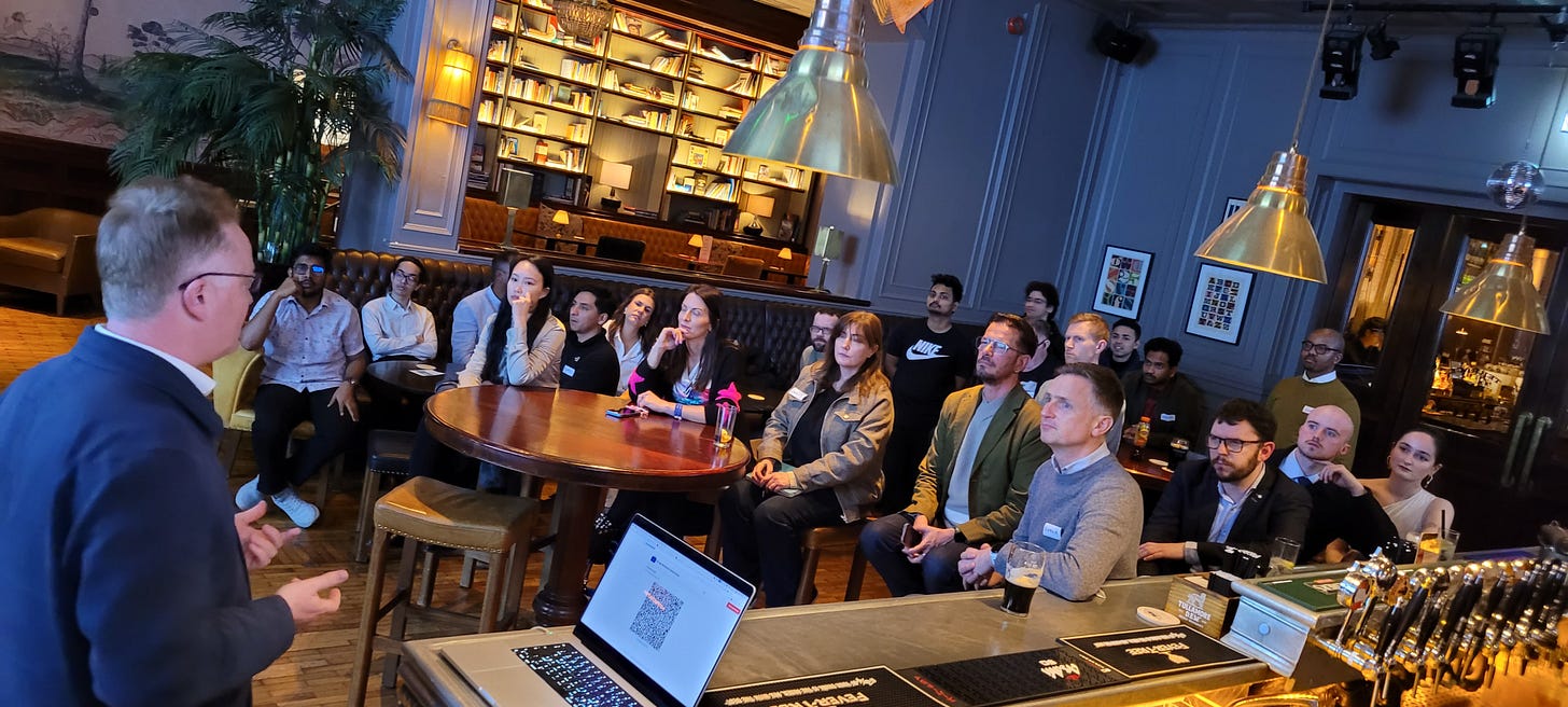 The event was an open mic format with a short talk on Vibe Coding by my good friend, and tech veteran Ronan Higgins. Ronan talked about how his work has been revolutionised in the last year with the advent of ‘Vibe Coding’. This is where non-coders use AI tools to design, develop, and deploy mobile / web apps.