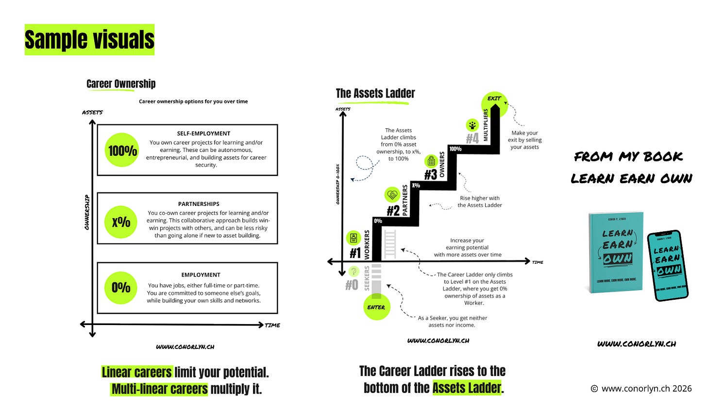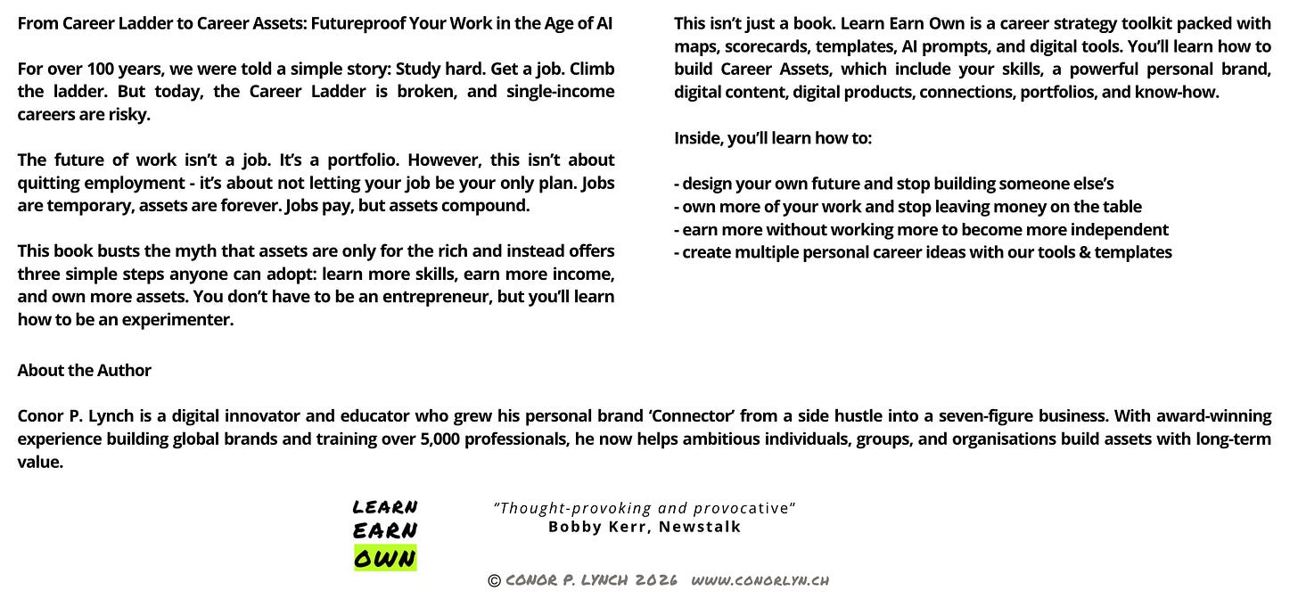 This is not just a book. It’s a career strategy toolkit packed with maps, scorecards, templates, and AI prompts. The free companion web app creates multiple personalised career paths for those who want to explore how to own more of their work.